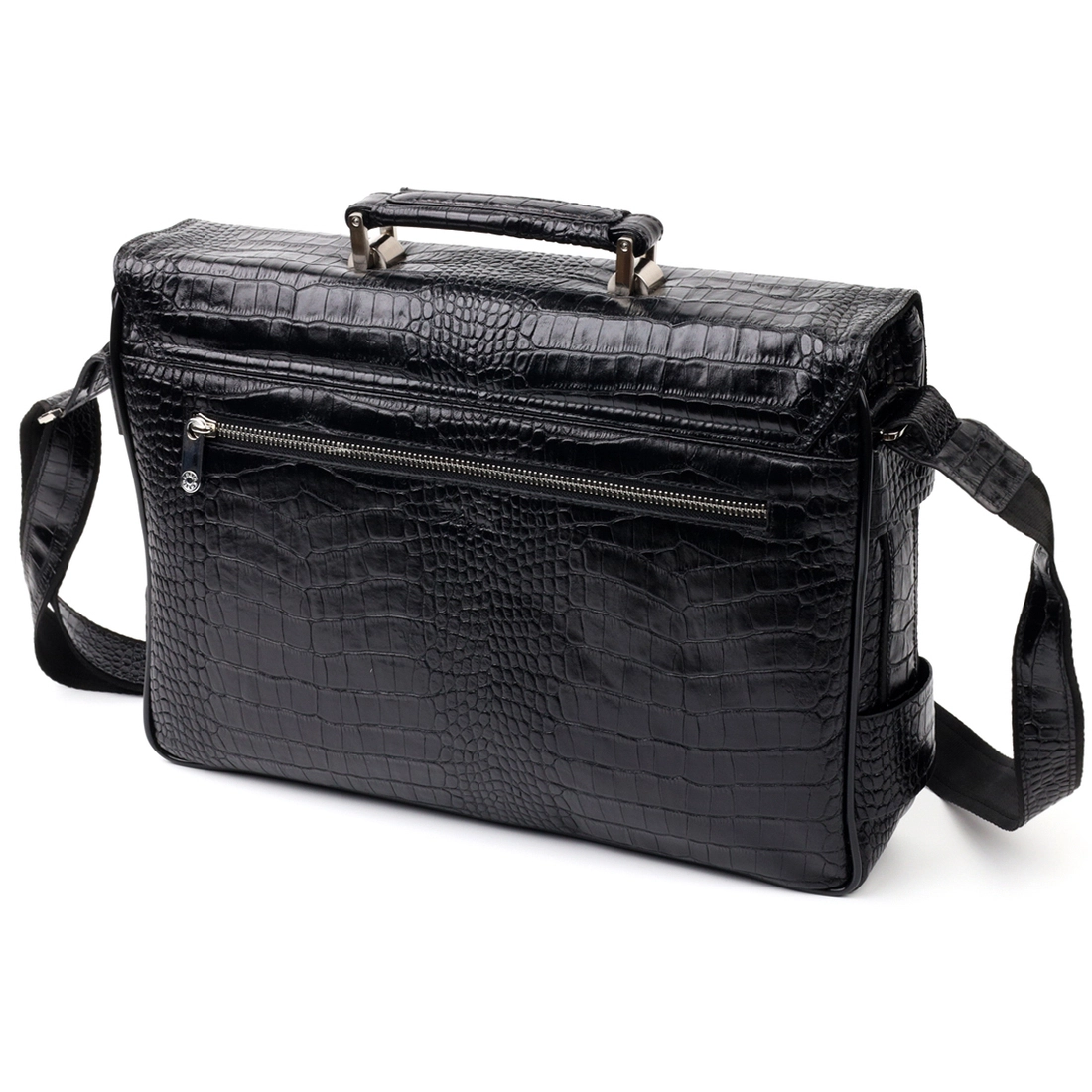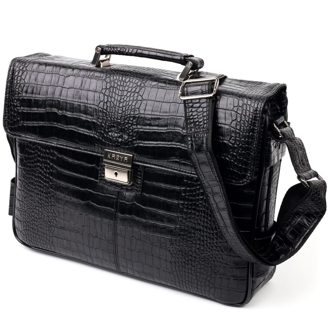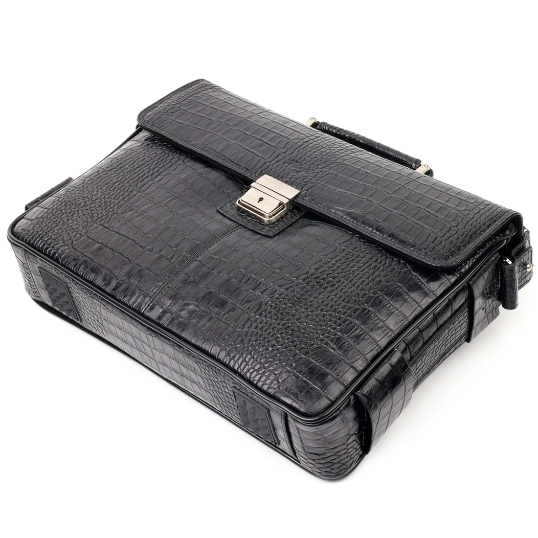 Удобный портфель из натуральной кожи с тиснением под крокодила,