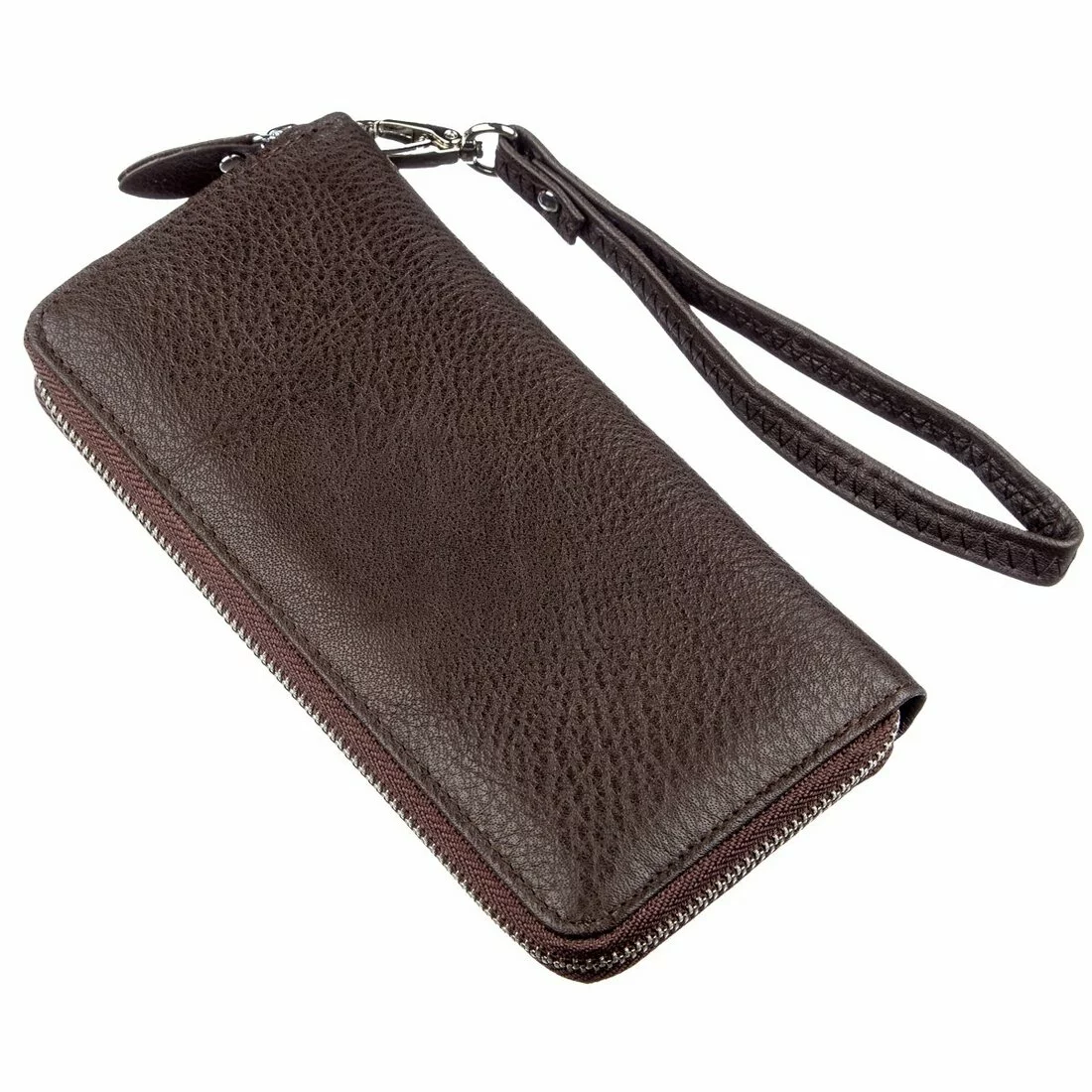 - женский клатч из натуральной кожи на молнии;