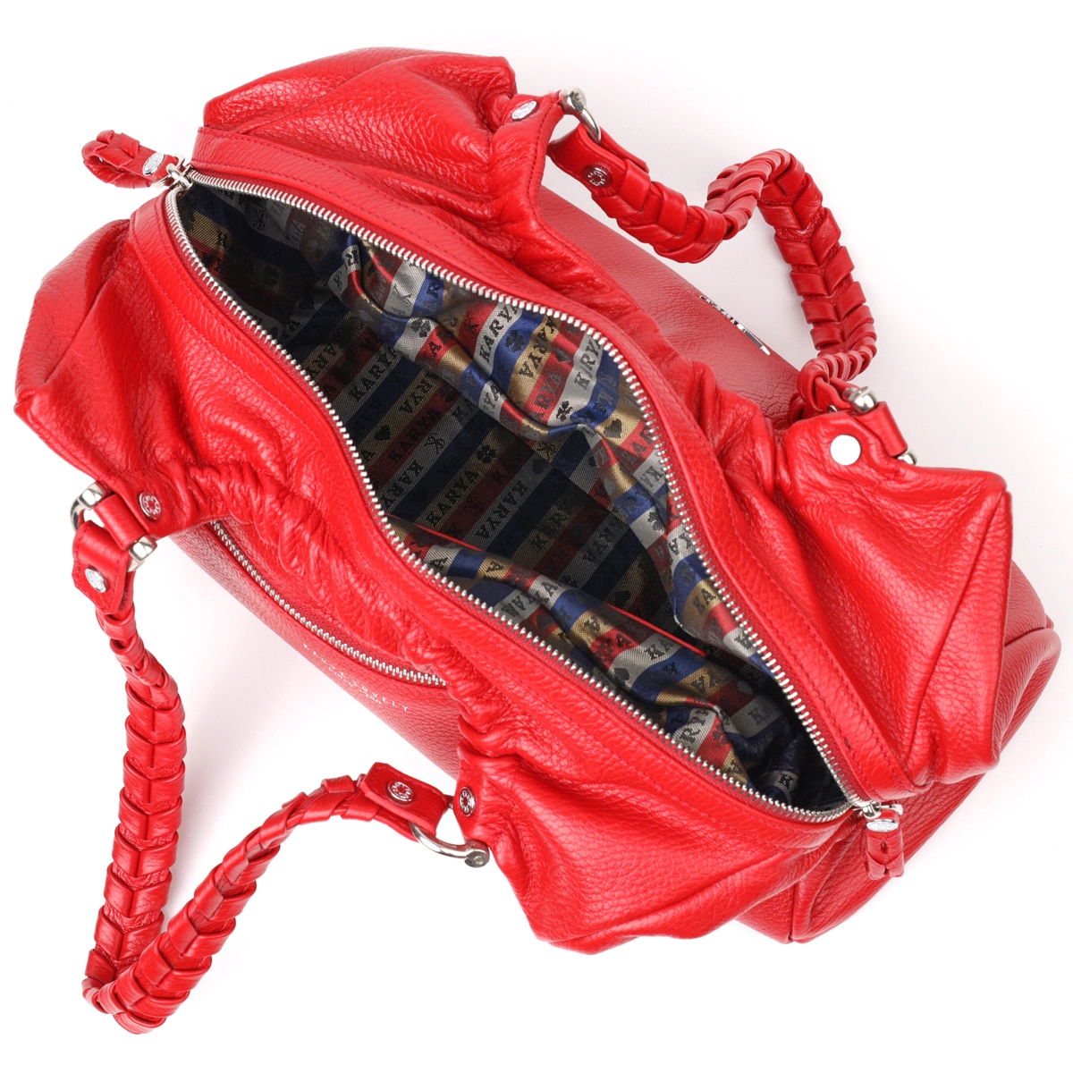 Красивая вместительная женская сумка из натуральной зернистой кожи, красного цвета. Сумка функциональна и удобна в эксплуатации, качественная фурнитура серебристого цвета не только дополняет стильный дизайн сумки, но и защищает изделие. Аксессуар упакован в фирменный текстильный мешок Karya. Сумка из натуральной кожи всегда будет отличным подарком любой женщине.