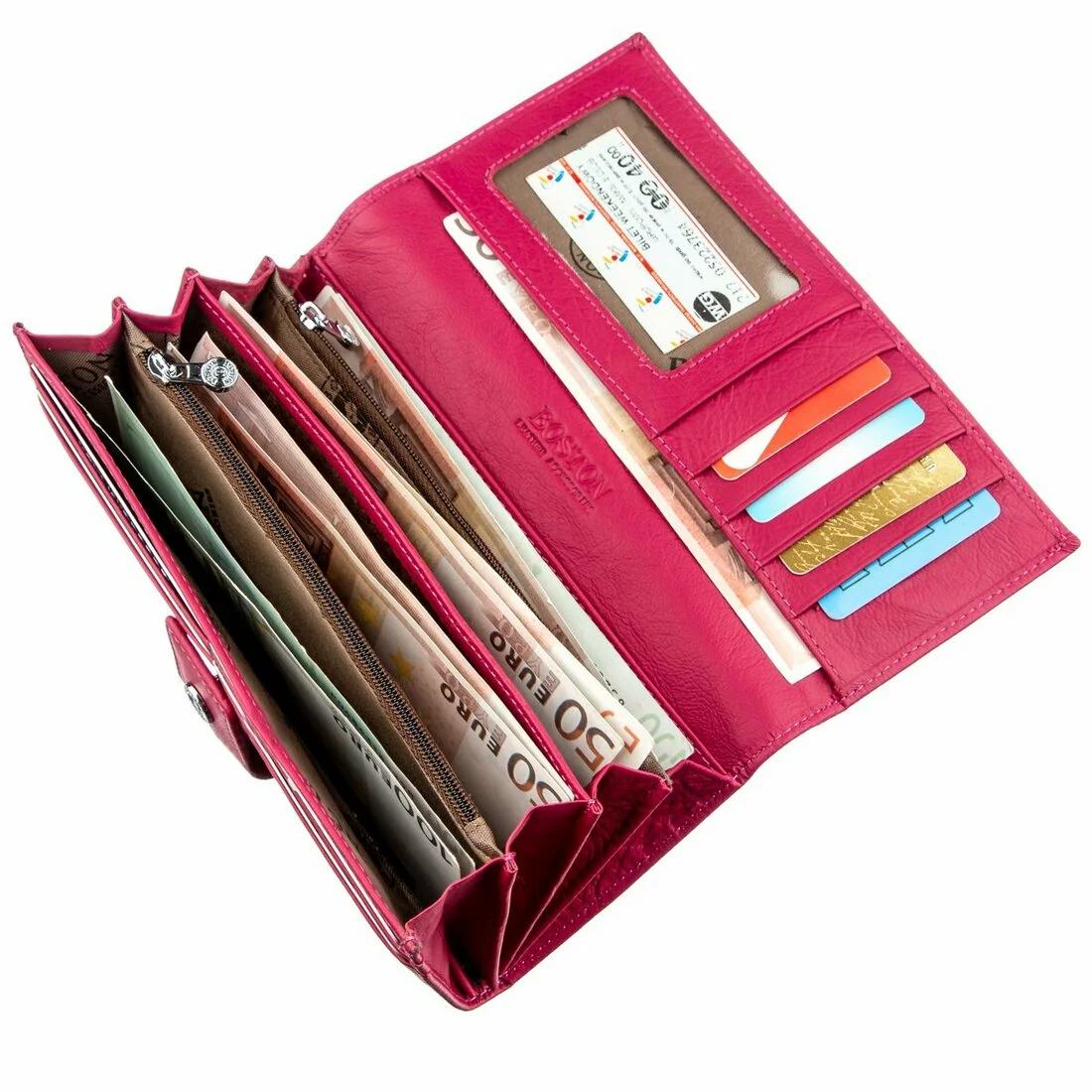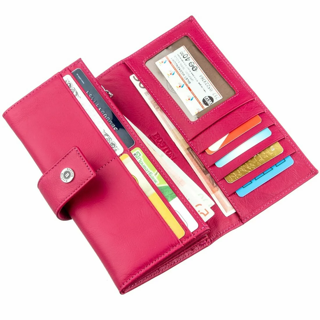 Превосходный кошелек для ярких и непосредственных женщин, которые не боятся быть в центре внимания. Выполнено изделие из высококачественной натуральной кожи. Цвет – ярко розовый с матовым оттенком. Кошелек очень практичный, а дизайн продуман до мелочей, поэтому Вам всегда будет с ним удобно и комфортно. Имеет кошелек четыре больших отделения для различных купюр, отделение для особо ценных вещей на молнии, карманы для карт и визиток, прозрачный кармашек для фото любимых людей. На внешней стороне предусмотрено отделение для мелочи на молнии. При покупке данного аксессуара, оно упаковывается в фирменную белую коробку с логотипом производителя.