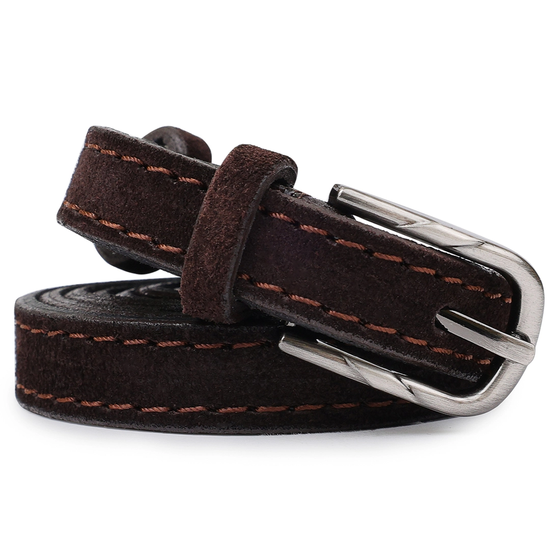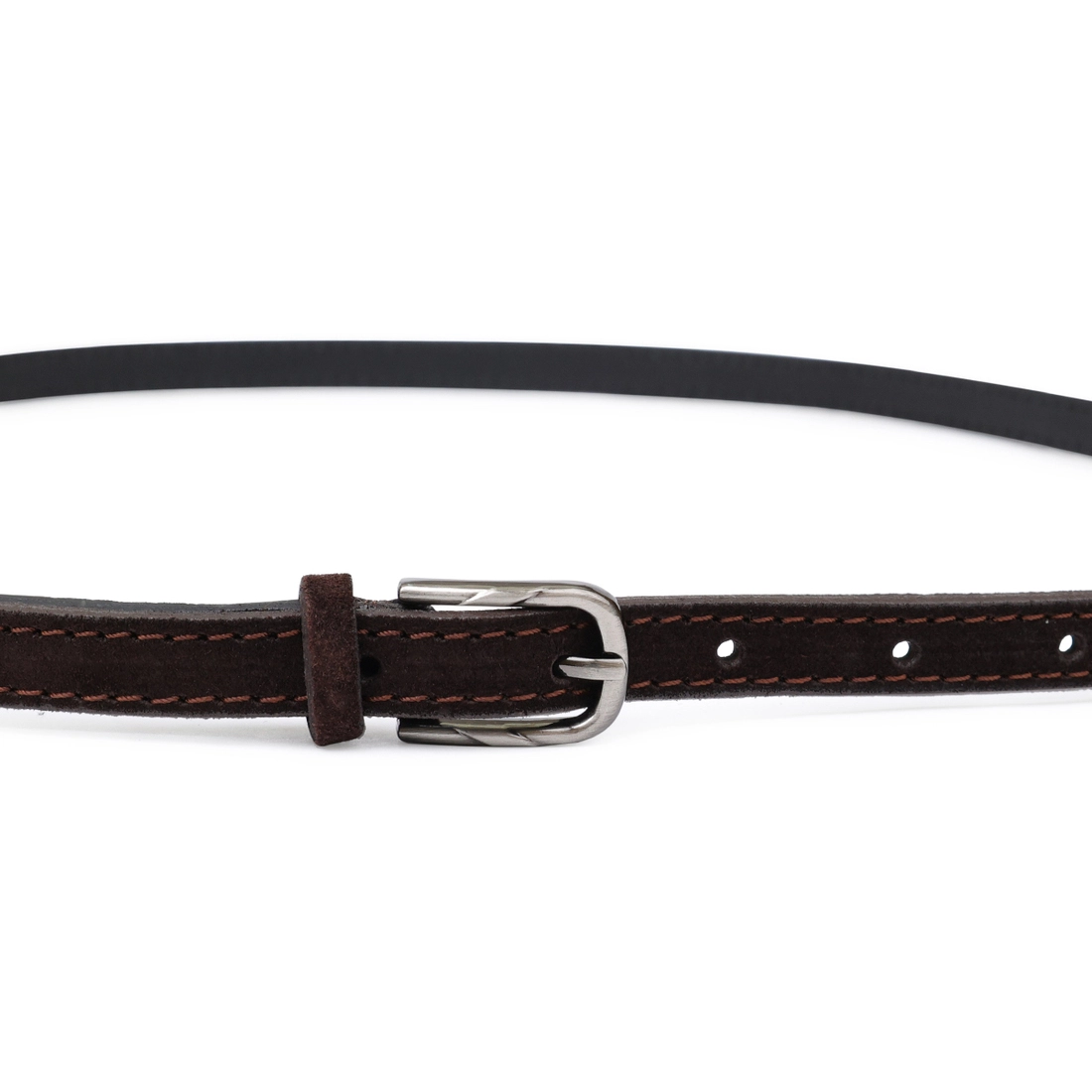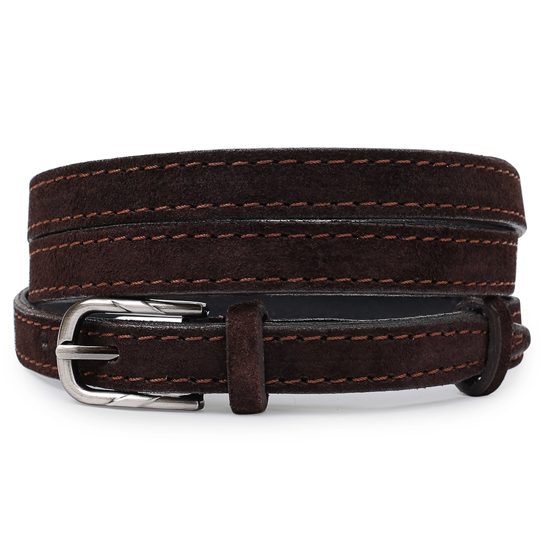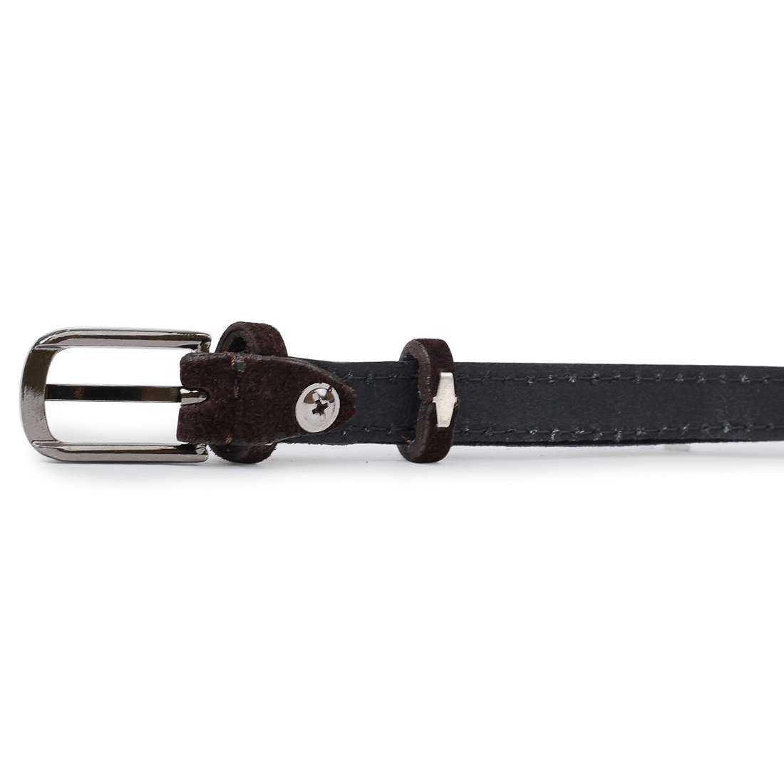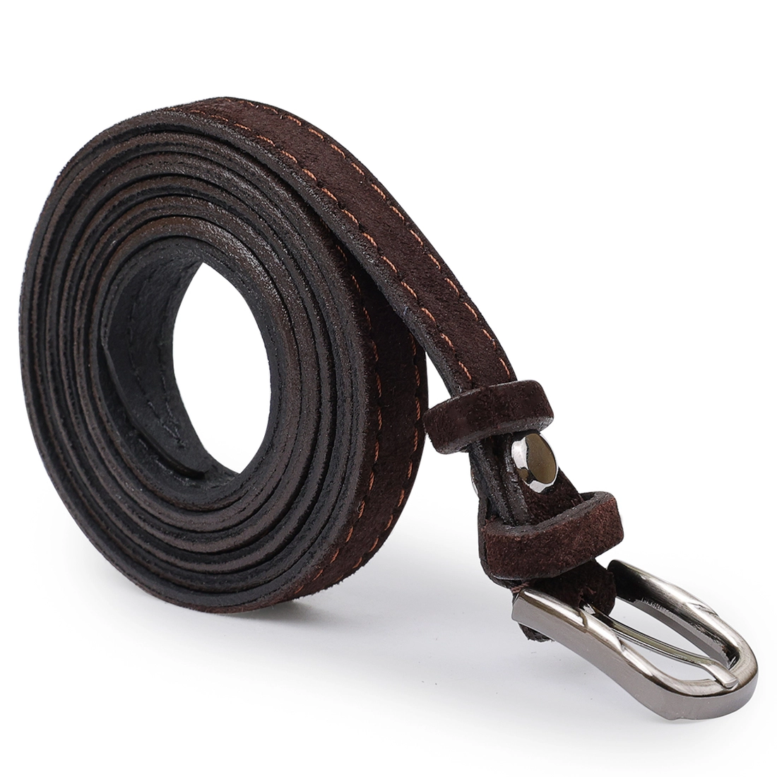 Замечательный стильный женский ремень в очень привлекательном шоколадном цвете. Гармонично дополнит Ваш образ и придаст ему выразительный акцент. Изготовлен ремень из высокопрочной натуральной кожи отличного качества. Пряжка – классическая, что очень удобно и практично.