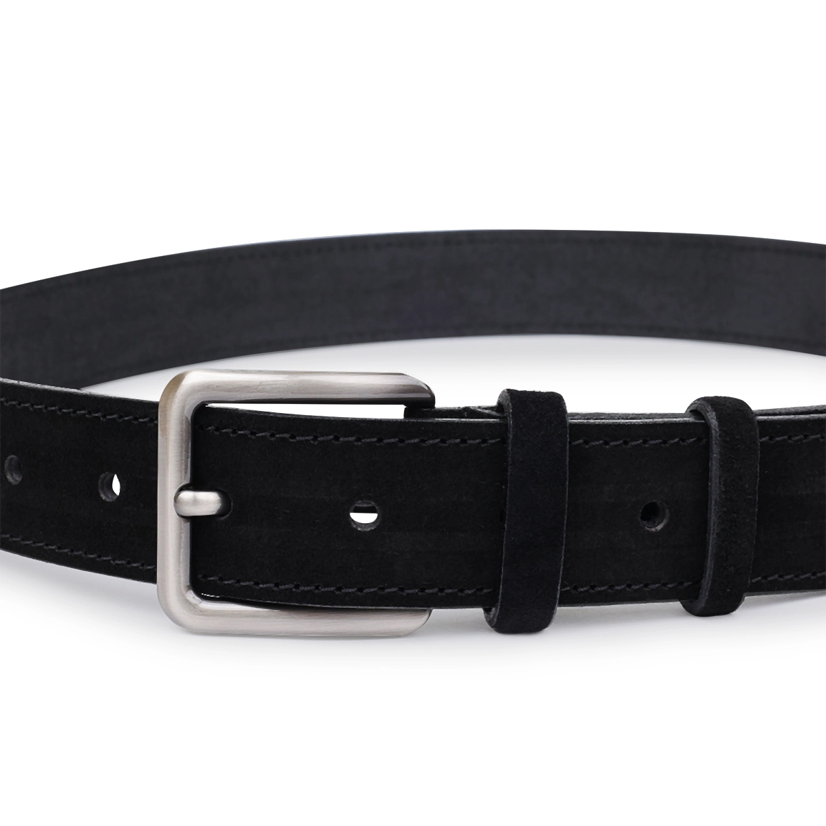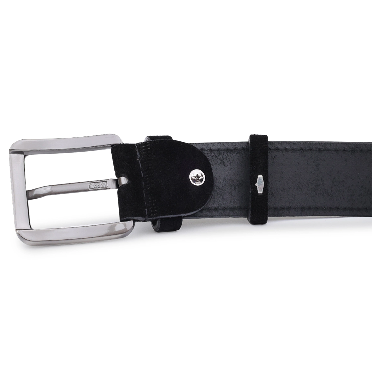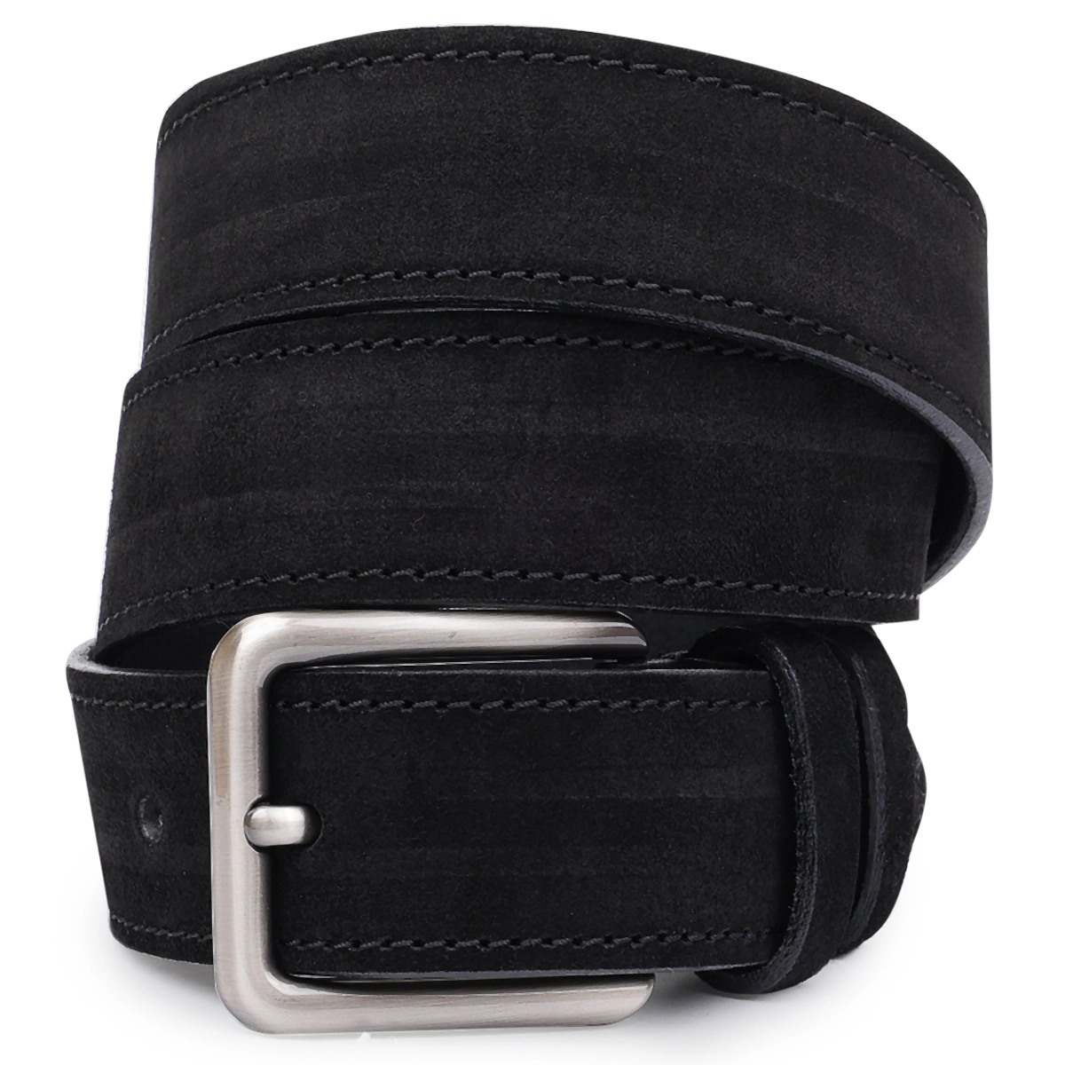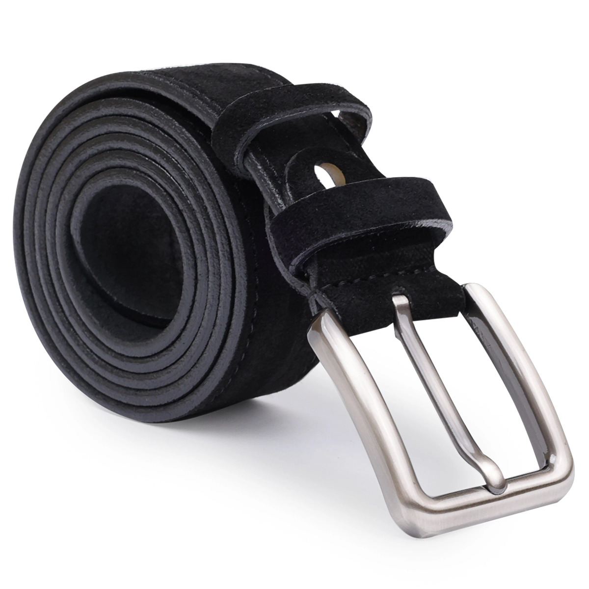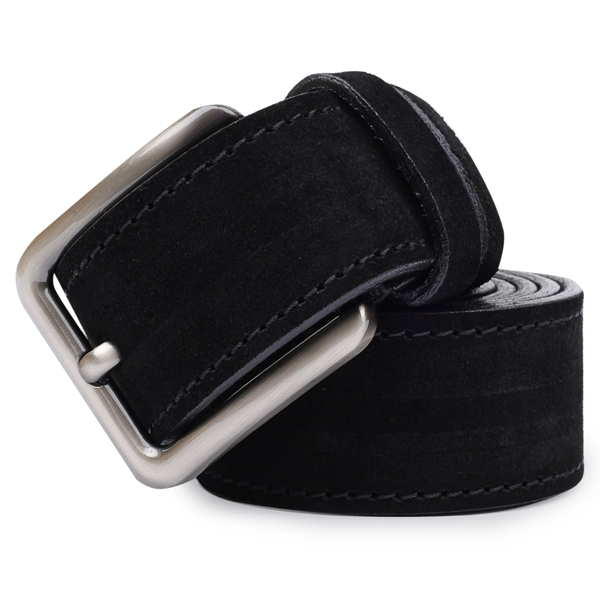 Красивый замшевый ремень в универсальном черном цвете для мужчин. Отлично подойдет под любой стиль одежды и обуви. Выполнен из натуральной высококачественной кожи с прекрасными эксплуатационными показателями. Фактура изделия – мягкая и приятная на ощупь, пряжка – классическая.