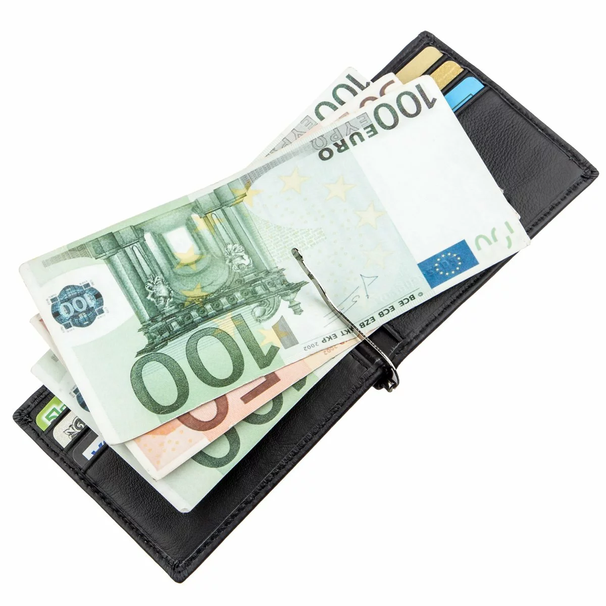 - внутри расположен металлический зажим для купюр;