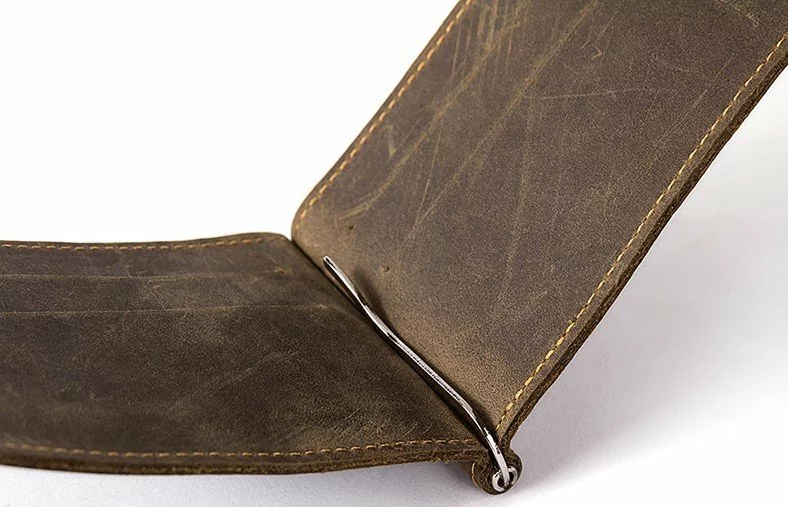 Компактный мужской зажим, из натуральной кожи.