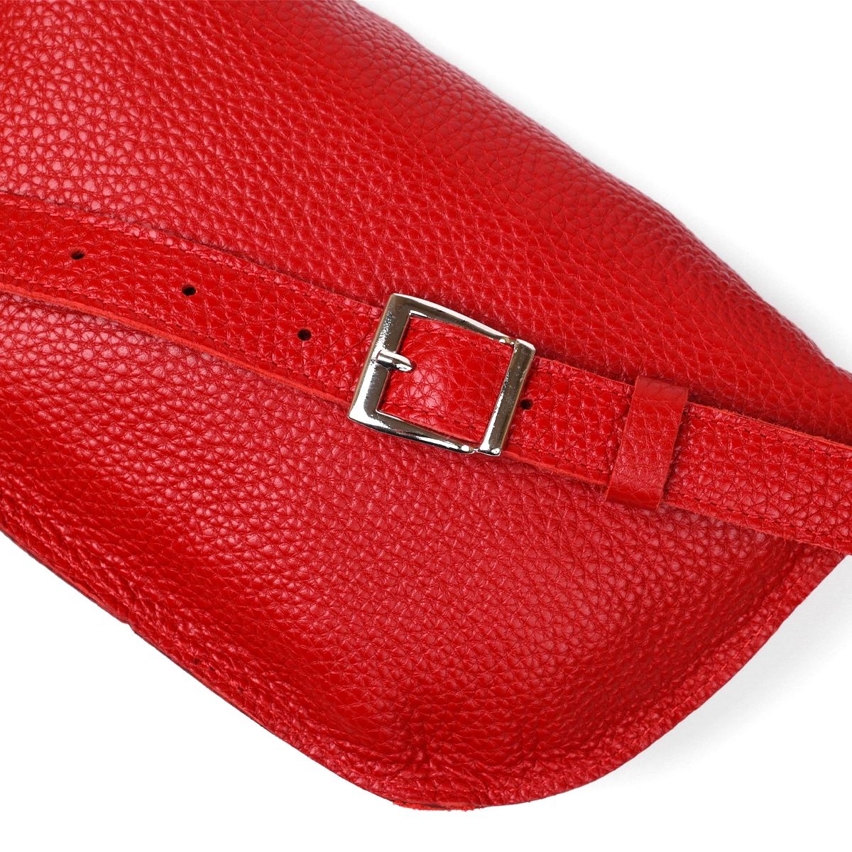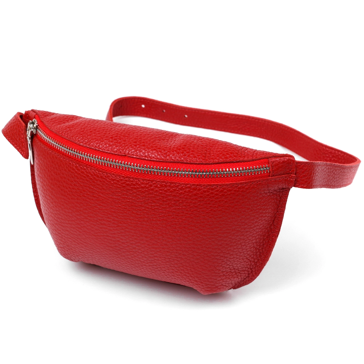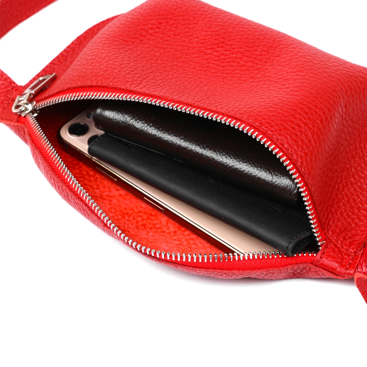 Стильная женская бананка из натуральной зернистой кожи в ярком