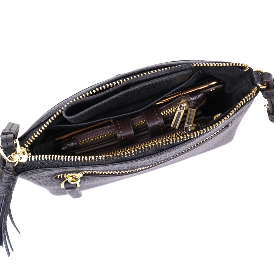 Маленькая стильная женская сумочка из натуральной высококачественной кожи с высокими показателями износоустойчивости. Имеет одно основное отделение с карманом для телефона и два внешних кармана для быстрого доступа. Ремешок в данной сумке выполнен из натуральной кожи и может регулироваться по длине. Данная сумочка станет отличным подарком любимой женщине, подруге или сестре.