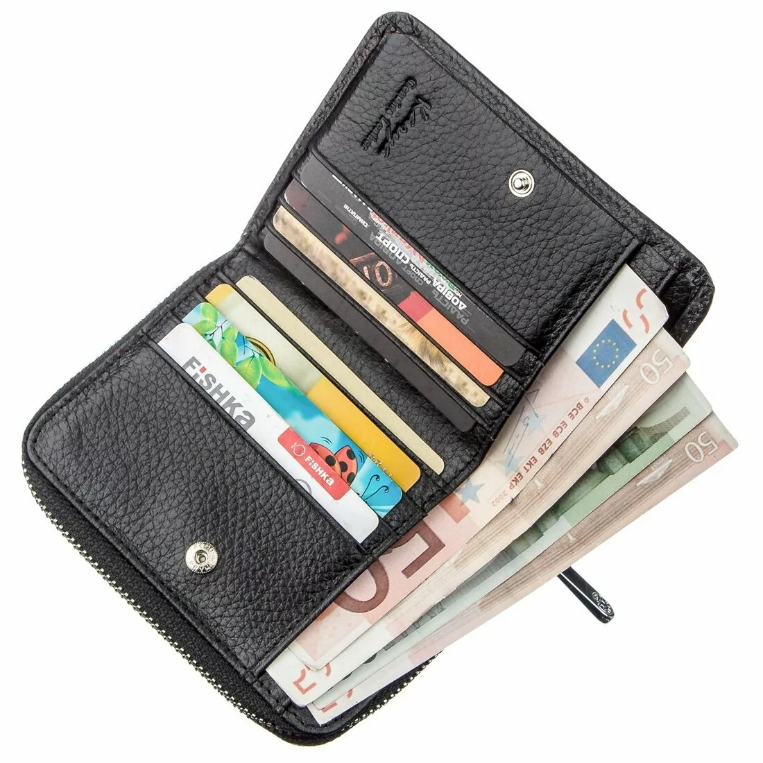 Кошелек легко поместится в маленькую женскую сумочку. Если вы в
