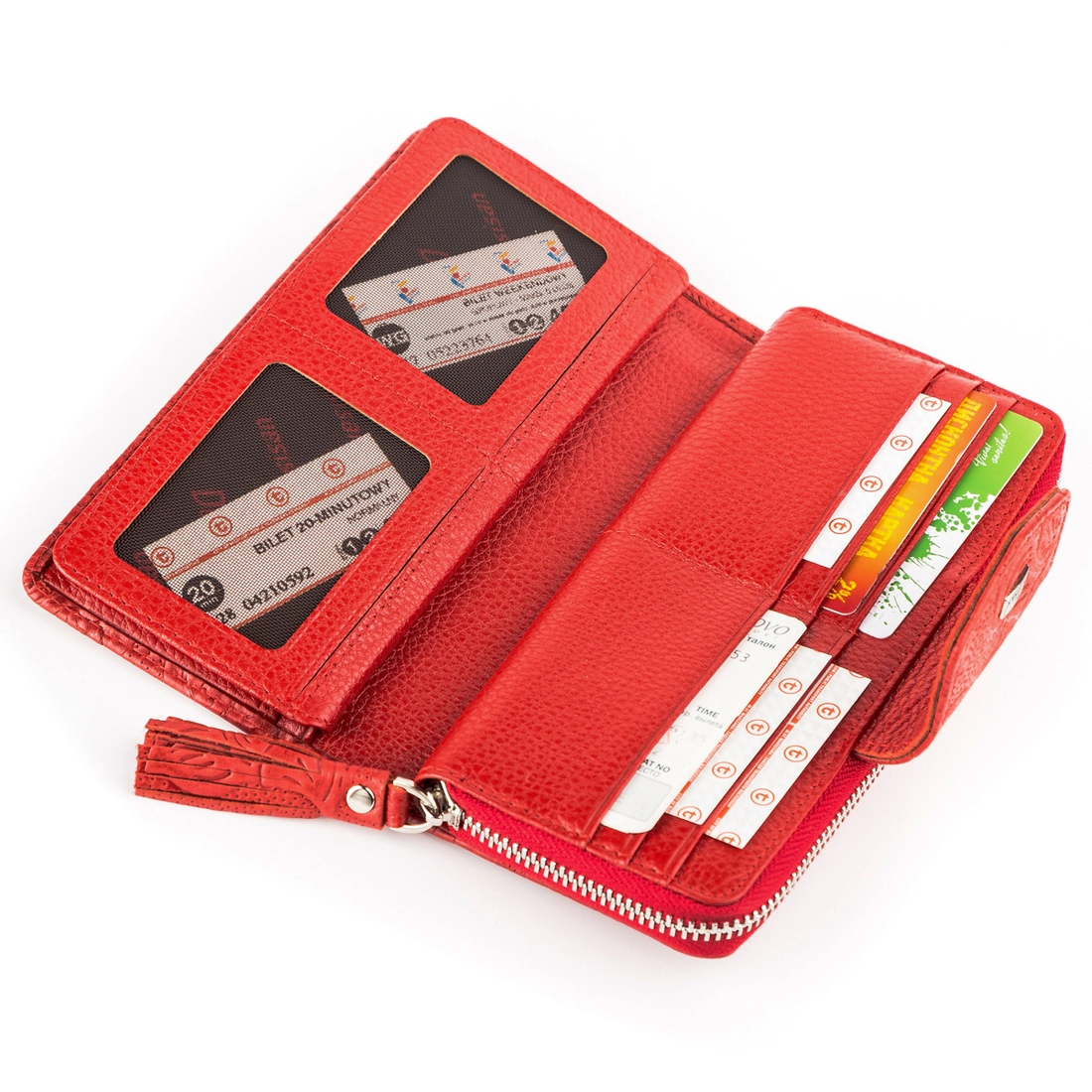 купюр и монетницу на змейке. С внешней стороны кошелька находится