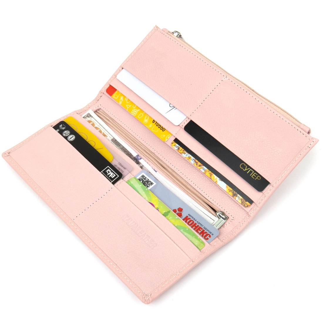 мягкая и приятная. В такой кошелек поместится все, что необходимо