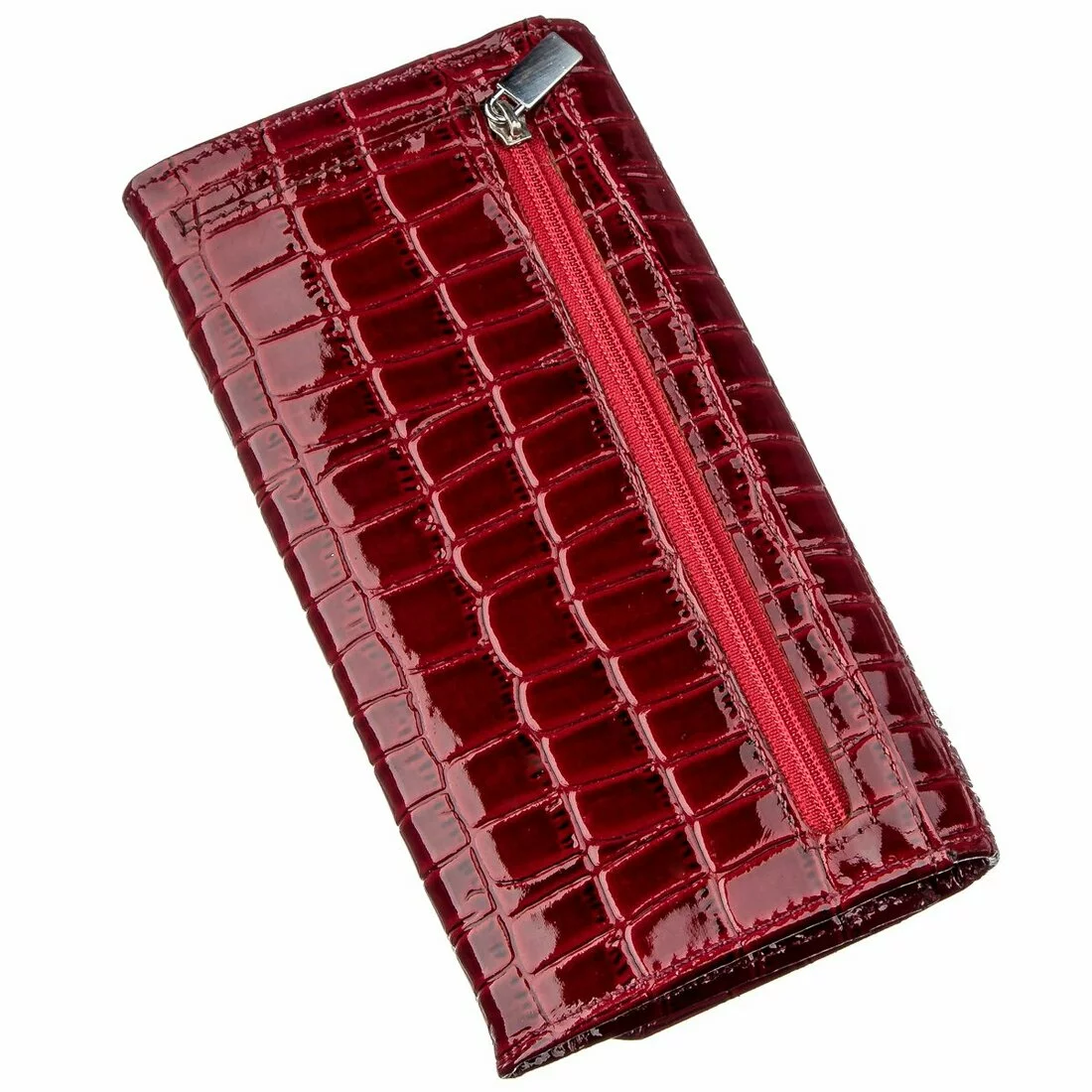 Яркий, красный кожаный кошелек из натуральной кожи под экзотику.