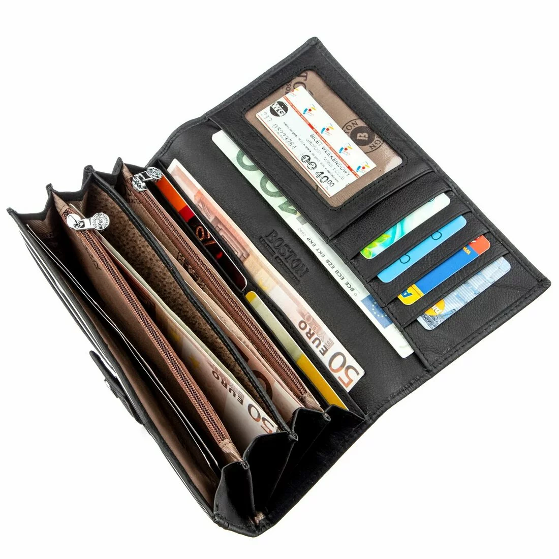 - внутри расположено четыре больших отделения для купюр по всей