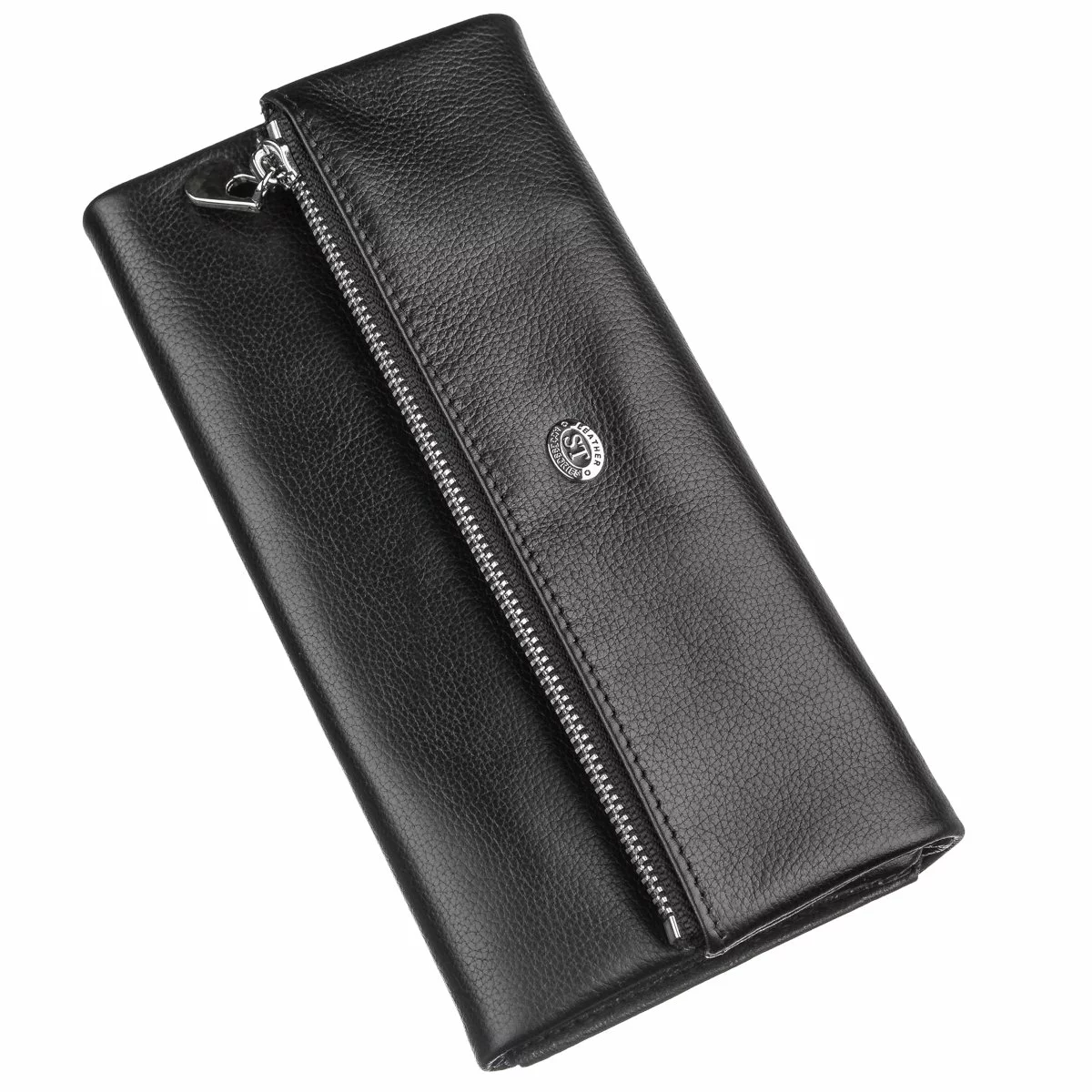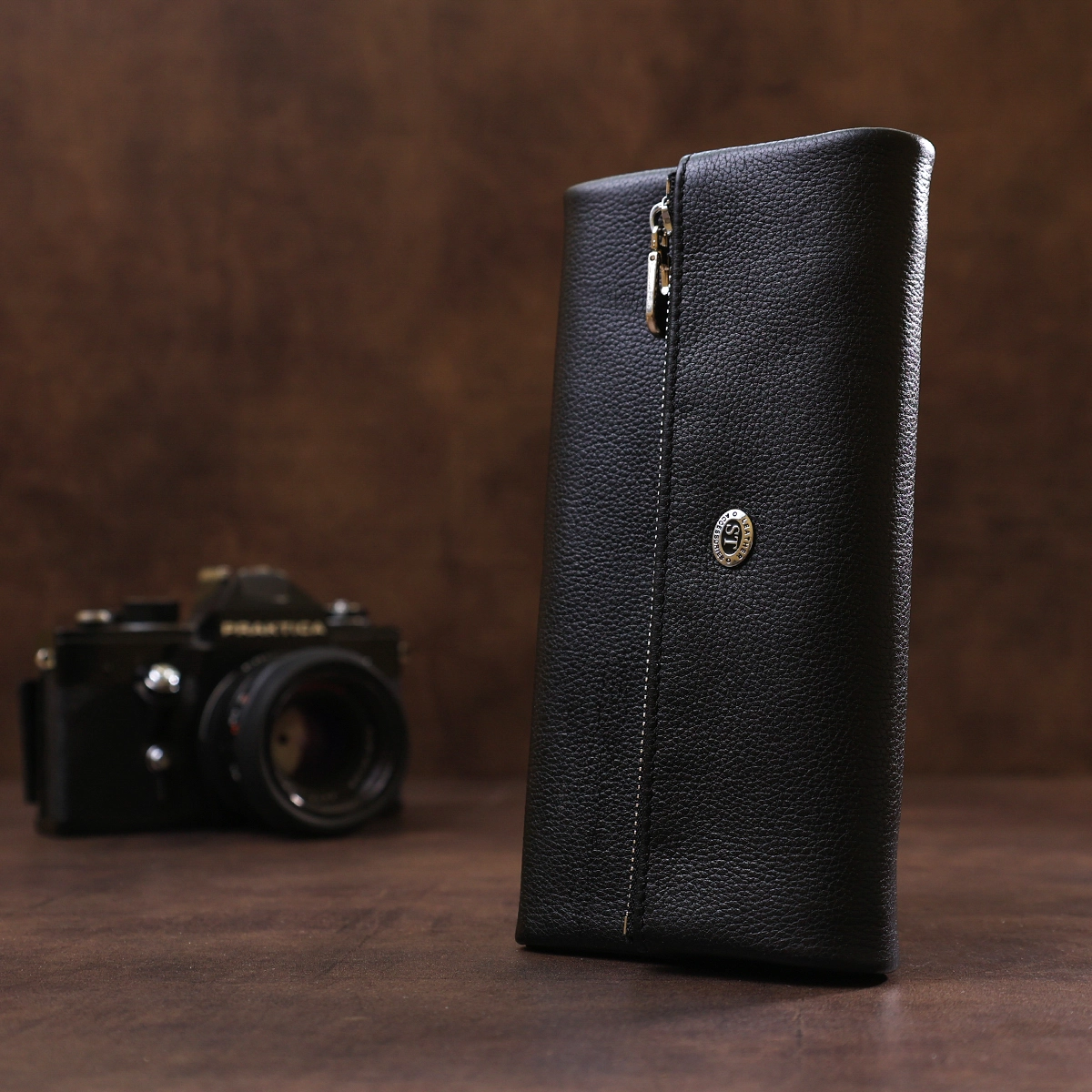Стильный женский кошелек-клатч из натуральной кожи, которая мягкая и приятная на ощупь и имеет матовую поверхность. Выполнен кошелек в классическом черном цвете. Подойдет для женщин с отличным чувством стиля и прекрасным вкусом. Данное изделие довольно практичное и вмещает в себя много нужных ценностей. Также в кошельке есть удобное внешнее отделение на замке для мелочей, которые должны быть легкодоступными. Поверьте, такой кошелек-клатч мечтает иметь каждая женщина, поэтому если Вы выбираете подарок, то это замечательный вариант. При покупке кошелька, он будет упакован в фирменную картонную коробку белого цвета.
