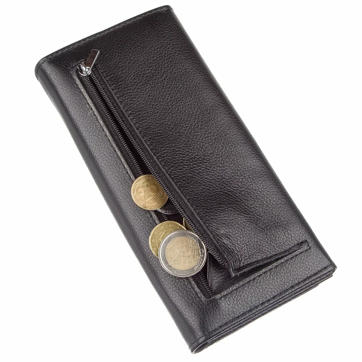 Вместительный и восхитительный женский кошелек. Модель выполнена в классическом черном цвете, который вам подойдет под любые вещи обувь и аксессуары. Выполнено изделие из мягкой плотной кожи, приятной на ощупь и дополнено качественной фурнитурой серебристого цвета. Модель в коже флотар, которая проносится значительно больше. Такой кошелек станет идеальным помощником для вас и ваших необходимых мелочей. Данная модель станет прекрасным подарком для любой девушки. В комплекте идет картонная фирменная коробка белого цвета.