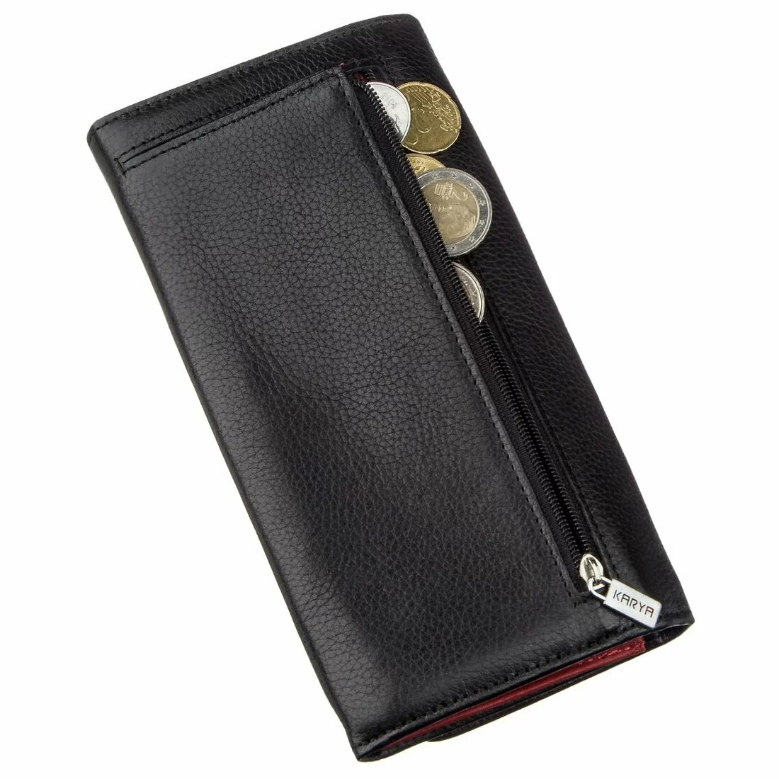 Кошелек мягкий и приятный на ощупь, держит форму и закрывается на