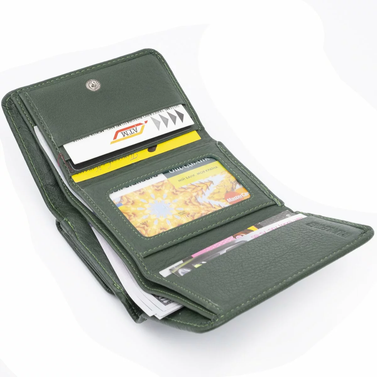 Превосходный женский кошелек из высококлассной натуральной кожи. Настоящей изюминкой данного бумажника есть его оригинальный горчичный цвет, с таким аксессуаром Вы точно не сможете остаться незамеченной. Поэтому этот кошелек для женщин, которые любят и не боятся всеобщего внимания. Наполнение кошелька представлено в виде отделений для купюр, визитных и кредитных карточек и, конечно же, монет или другой мелочи. Закрывается аксессуар на кнопку, что очень удобно и практично. Этот бумажник станет замечательным презентом себе или другому дорогому человеку. Упаковано изделие в фирменную белую коробку с логотипом.