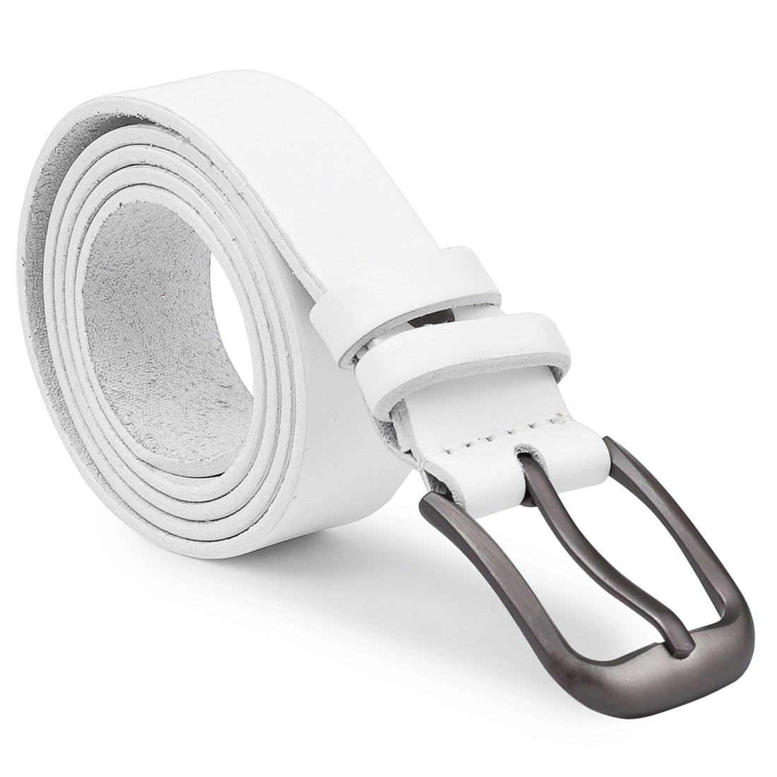 Хороший добротный женский ремень стандартного размера под джинсы или под брюки. Материал изготовления – натуральная кожа высокого качества с повышенной прочностью. Имеет матовый белый цвет и приятную на ощупь фактуру. Такой ремень станет отличным подарком любимой женщине на любой праздник.