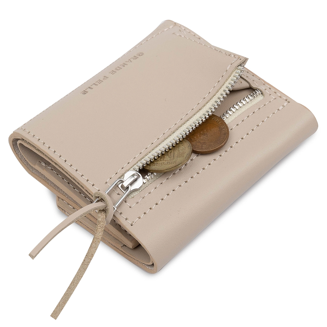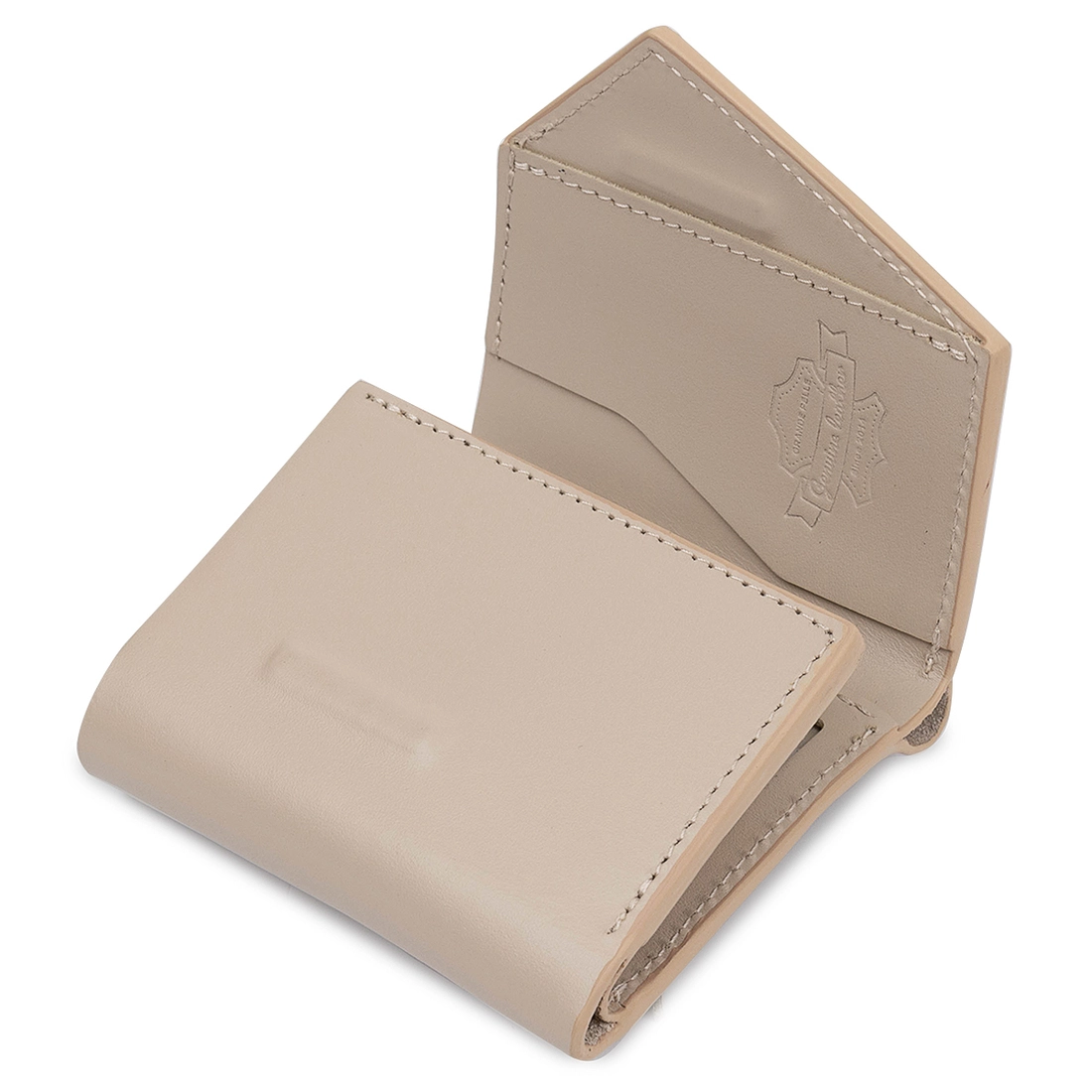 Красивое небольшое женское портмоне с оригинальным скошенным клапаном. Выполнено изделие из высококлассной износоустойчивой кожи высокой прочности. Внутри есть отделение для купюр и слоты для карт, а на внешней стороне разместилась небольшая монетница на молнии. Упаковано изделие в фирменный чехол.