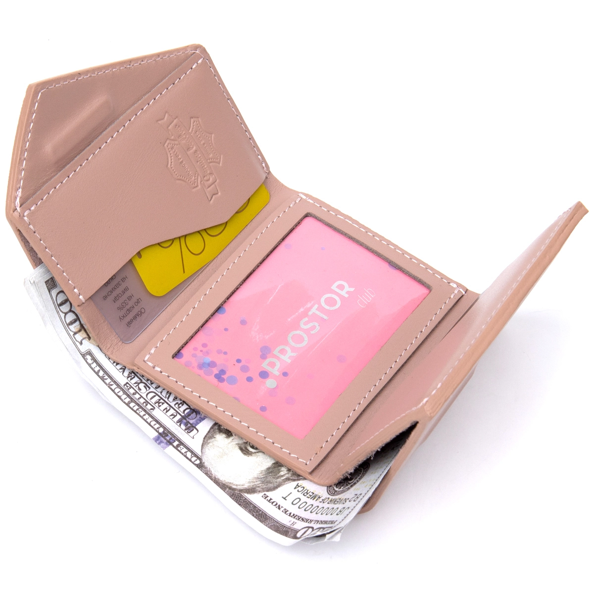 Внутри одно вместительное отделение для купюр и слоты для карт.